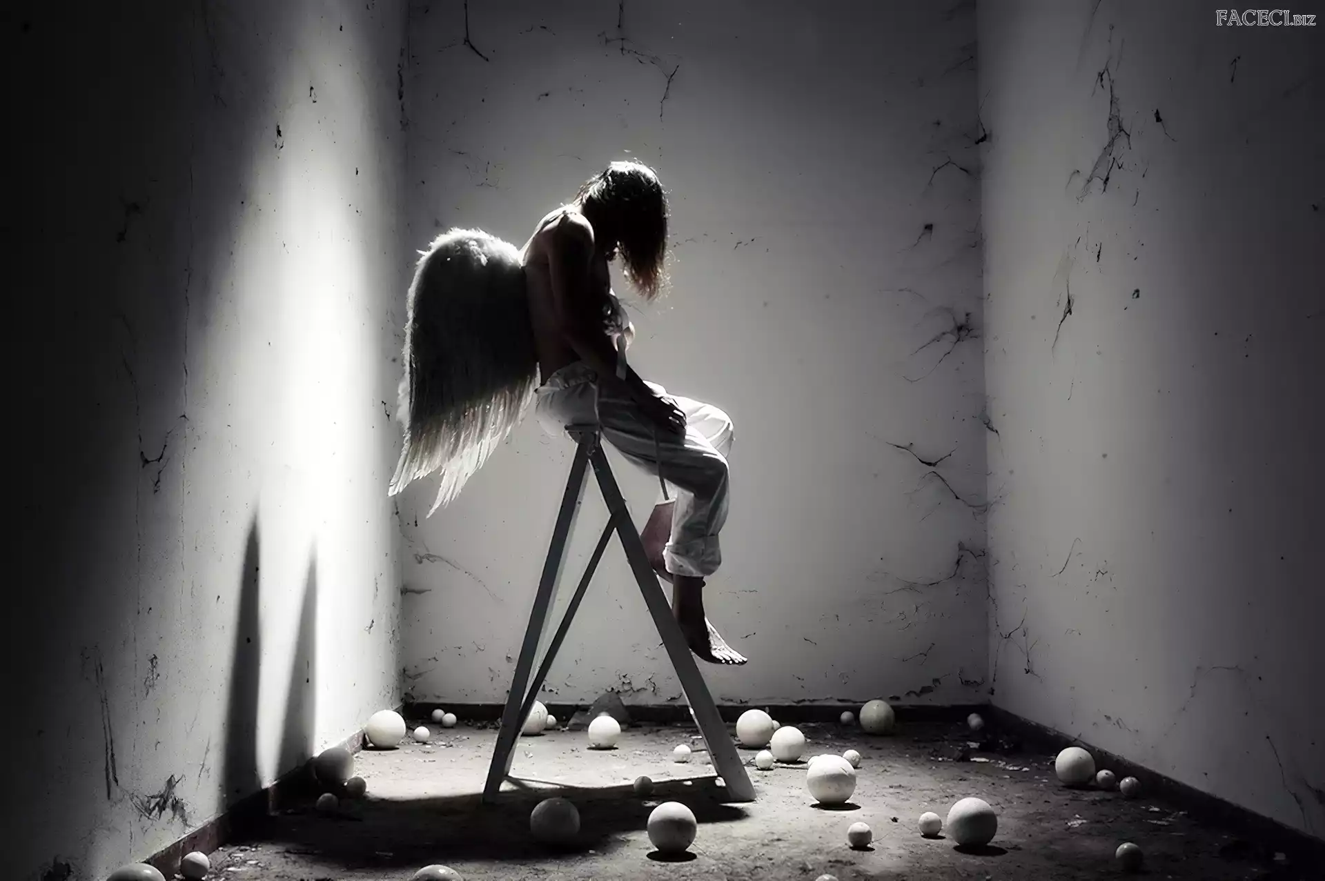 Mężczyzna, Drabina, Anioł, Skrzydła - faceci.biz